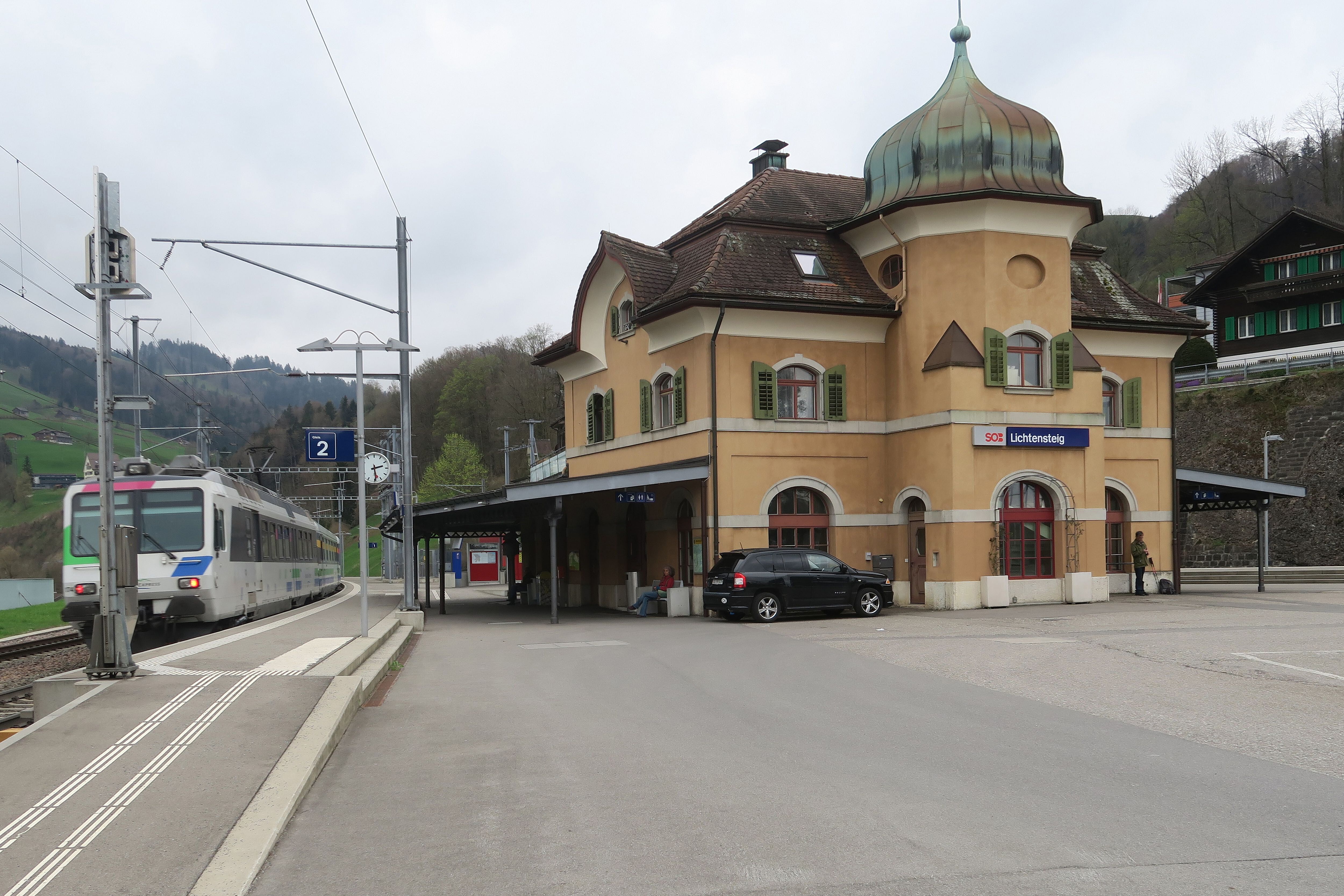 1870 erhielt Lichtensteig einen ersten Bahnanschluss, mit der Eröffnung der Bodensee-Toggenburg-Bahn 1910 wurde es zum Knotenpunkt. Die beiden Bahnhofgebäude und das ehem. Hotel Bahnhalle von 1893, heute ein Kleintheater, sind beredte Zeugen dieser Geschichte, die mit der Entwicklung des Areals demnächst fortgeschrieben werden soll.