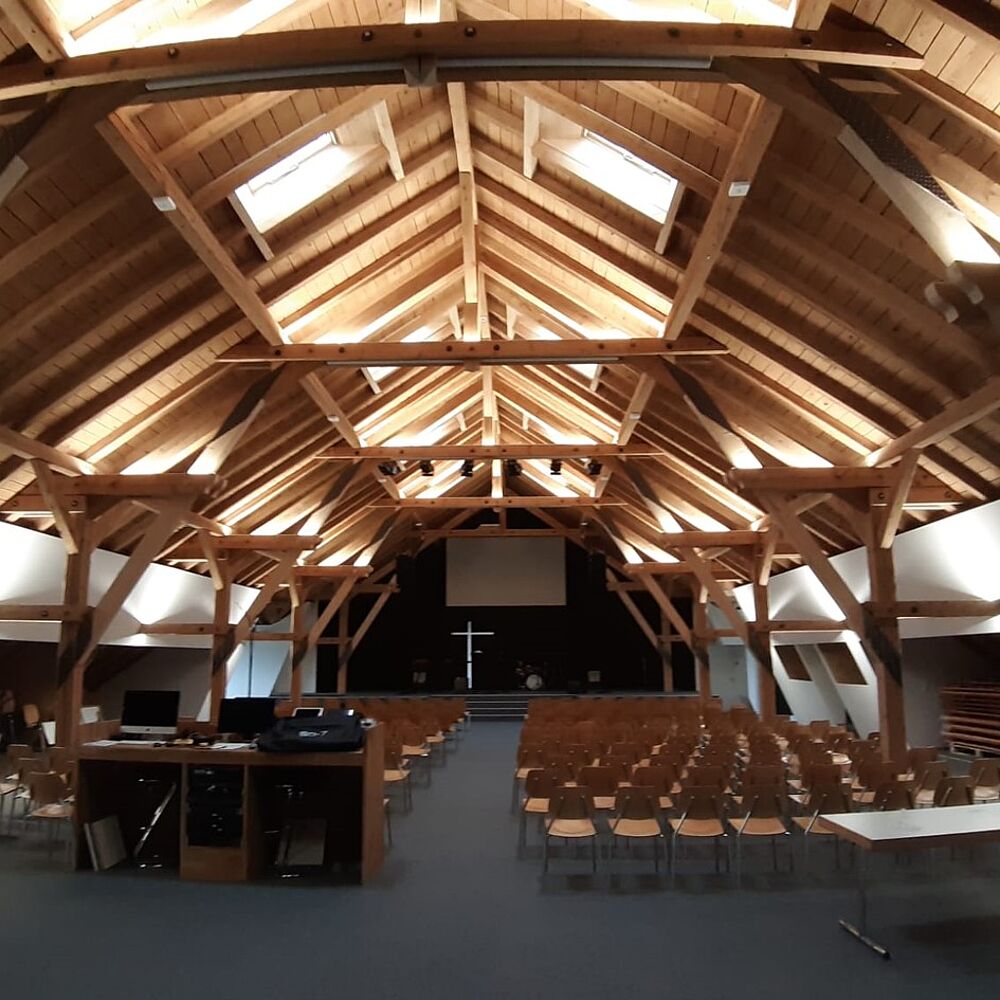 Rénové et isolé, le bâtiment classé digne de conservation abrite aujourd’hui une grande salle de culte sous les combles, qui met en valeur la charpente d’origine. Différents locaux propres aux activités de la communauté mais également de diverses associations ou particuliers occupent les niveaux inf...