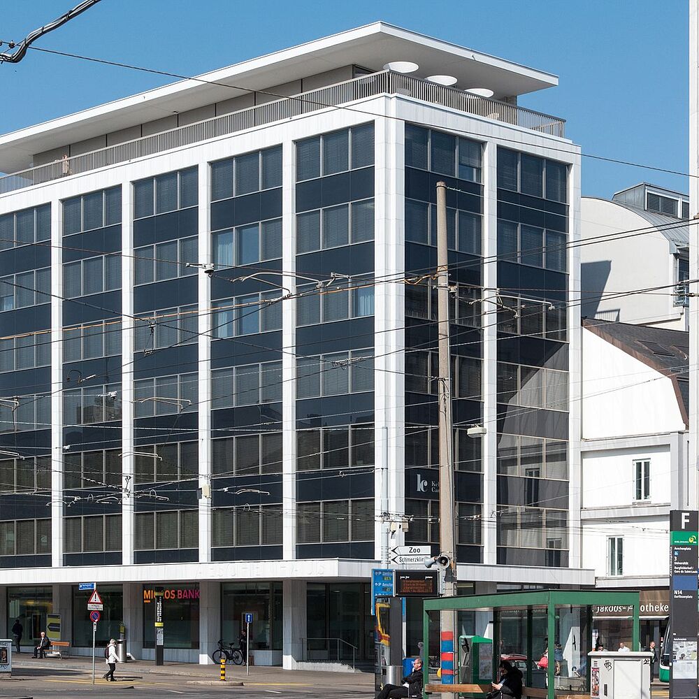 Mit dem 1961–1966 als Aeschenbank entstandenen Aeschenhaus hatten Franz Bräuning und Arthur Dürig an städtebaulich ausgezeichneter Lage ein typisches modernes Büro- und Geschäftshaus der boomenden Nachkriegsjahrzehnte entworfen. Charakteristische Merkmale sind die Stahlbeton-Skelettkonstruktion, die...