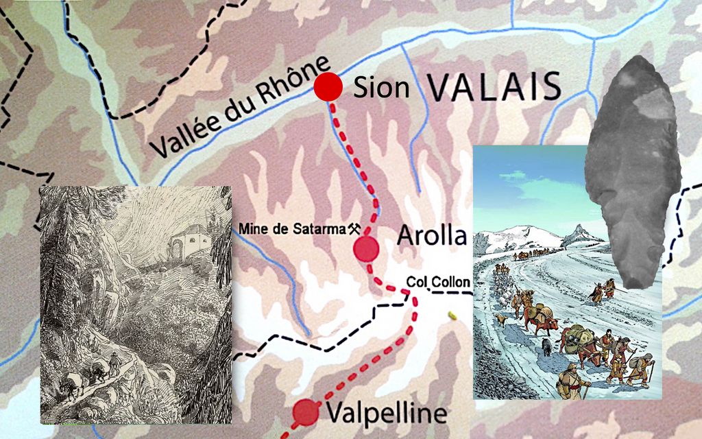 Cette route historique, déjà connue au Néolithique, était empruntée pour transporter des marchandises et conduire du bétail à la foire du Val d’Aoste durant le Moyen Âge et les Temps modernes. C’est seulement vers la fin du 19e siècle que le sentier muletier, attesté depuis l’époque romaine et reliant Sion à Evolène, a été remplacé par une route carrossable. Son dernier tronçon entre Les Haudères et Arolla n’est terminé qu’en 1960. Ses vestiges, notamment des chapelles, seront visités.