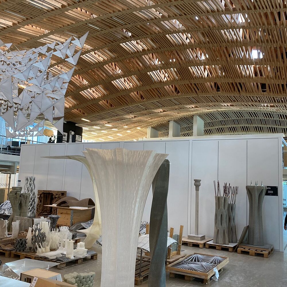 Das Institut für Technologie in der Architektur der ETHZ forscht zu ressourcenschonenden Baumethoden. Das Gebäude Arch Tech Lab ist Ausdruck dieser Forschung. Sein freitragendes Dachtragwerk war digital geplant und 2016 von Robotern aus kurzen Holzlatten errichtet worden. Darin werden aktuell im Dig...