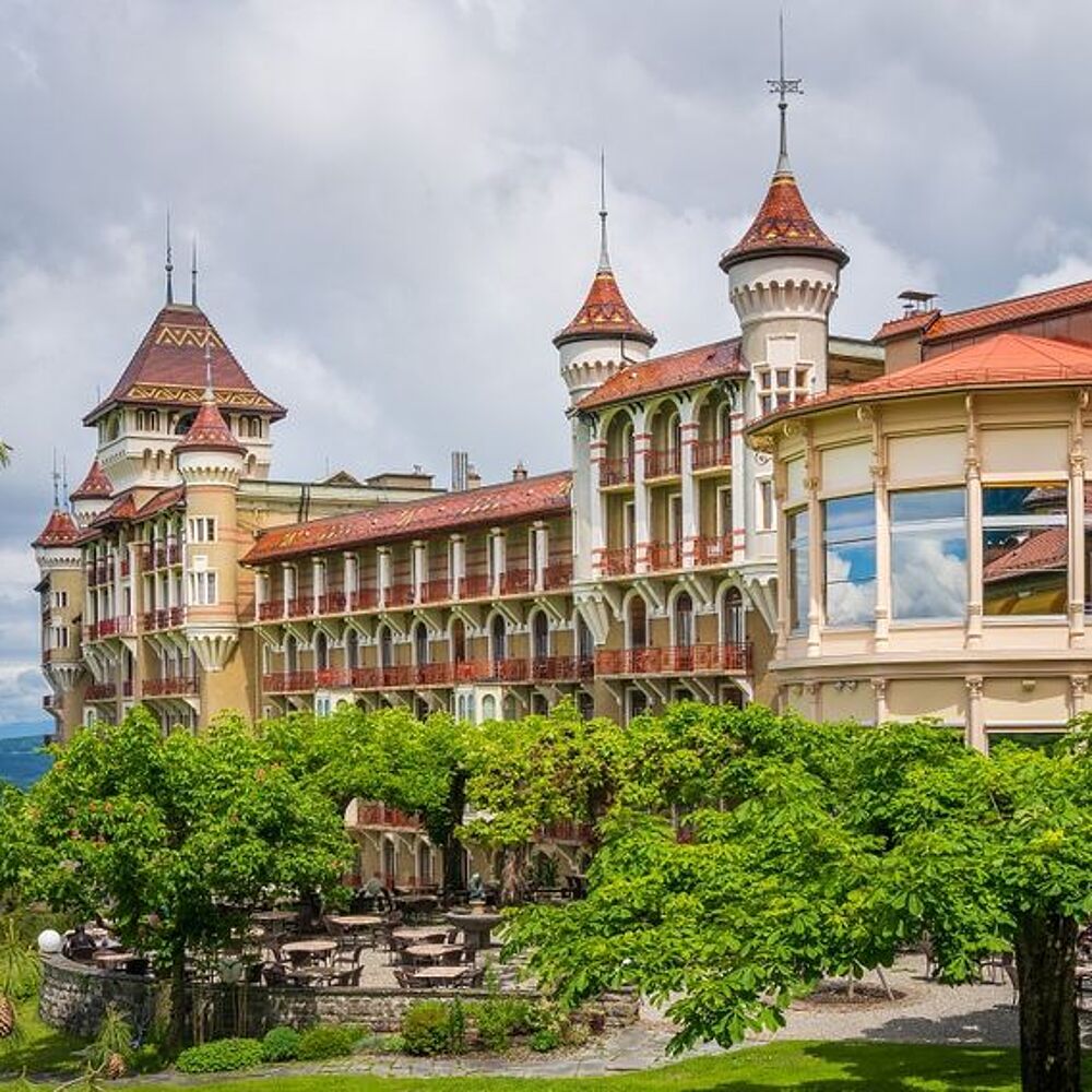 L'établissement de Caux est l’un des plus grands palaces de Suisse. Construit en 1902 par Eugène Jost, également architecte du palace de Montreux, il est niché sur une terrasse de plus de 500 m, dans les hauts de Montreux, proposant une vue époustouflante sur tout le bassin lémanique. Après sa faill...