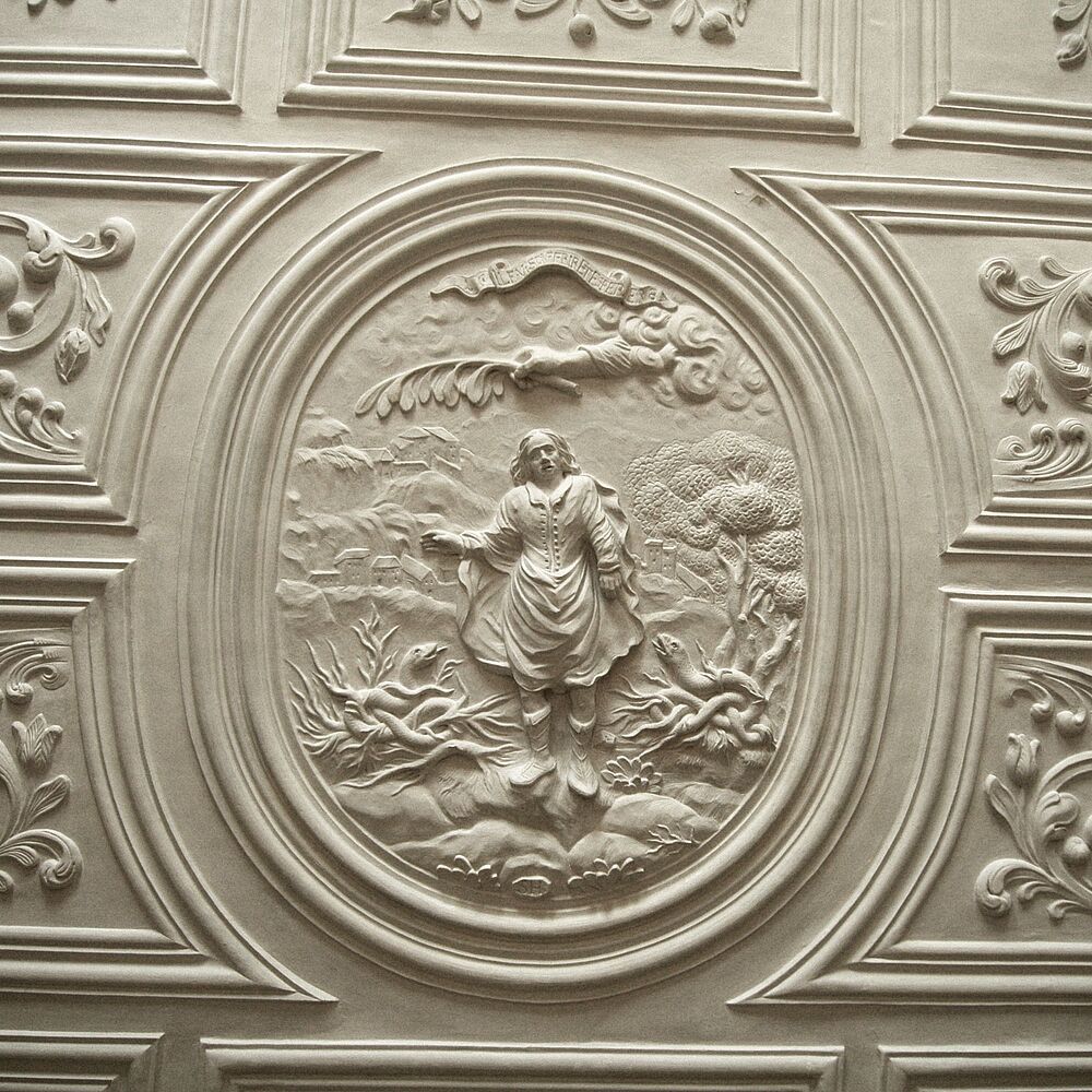Schaffhausen brachte zwischen 1660 und 1760 die einzige namhafte Stuckateurschule der Deutschschweiz hervor. Im Grossen Haus am Fronwagplatz begegnen wir den Werken gleich mehrerer Meister. Von Samuel Höscheller stammt das auch als historisches Zeugnis interessante Hugenotten-Relief von 1687. Hans J...
