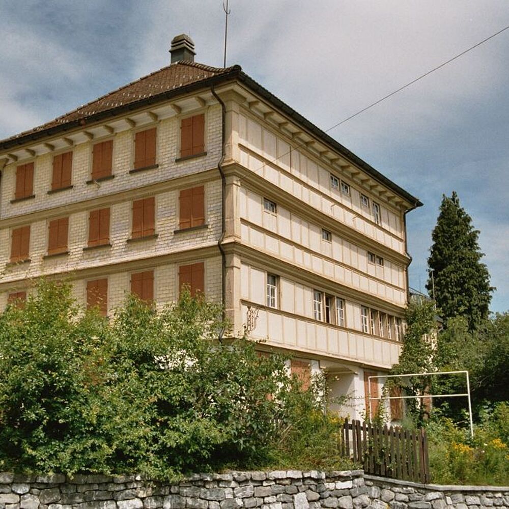 Das Fabrikantenhaus liegt prominent am Eingang zum malerischen Strassendorf Schwellbrunn. Mit dem Zusammenbruch der Stickerei-Wirtschaft nach dem 1. Weltkrieg erfuhren viele Fabrikantenhäuser eine Veränderung. Einige wurden in Mehrfamilienhäuser unterteilt und in den Erdgeschossen nisteten sich Läde...