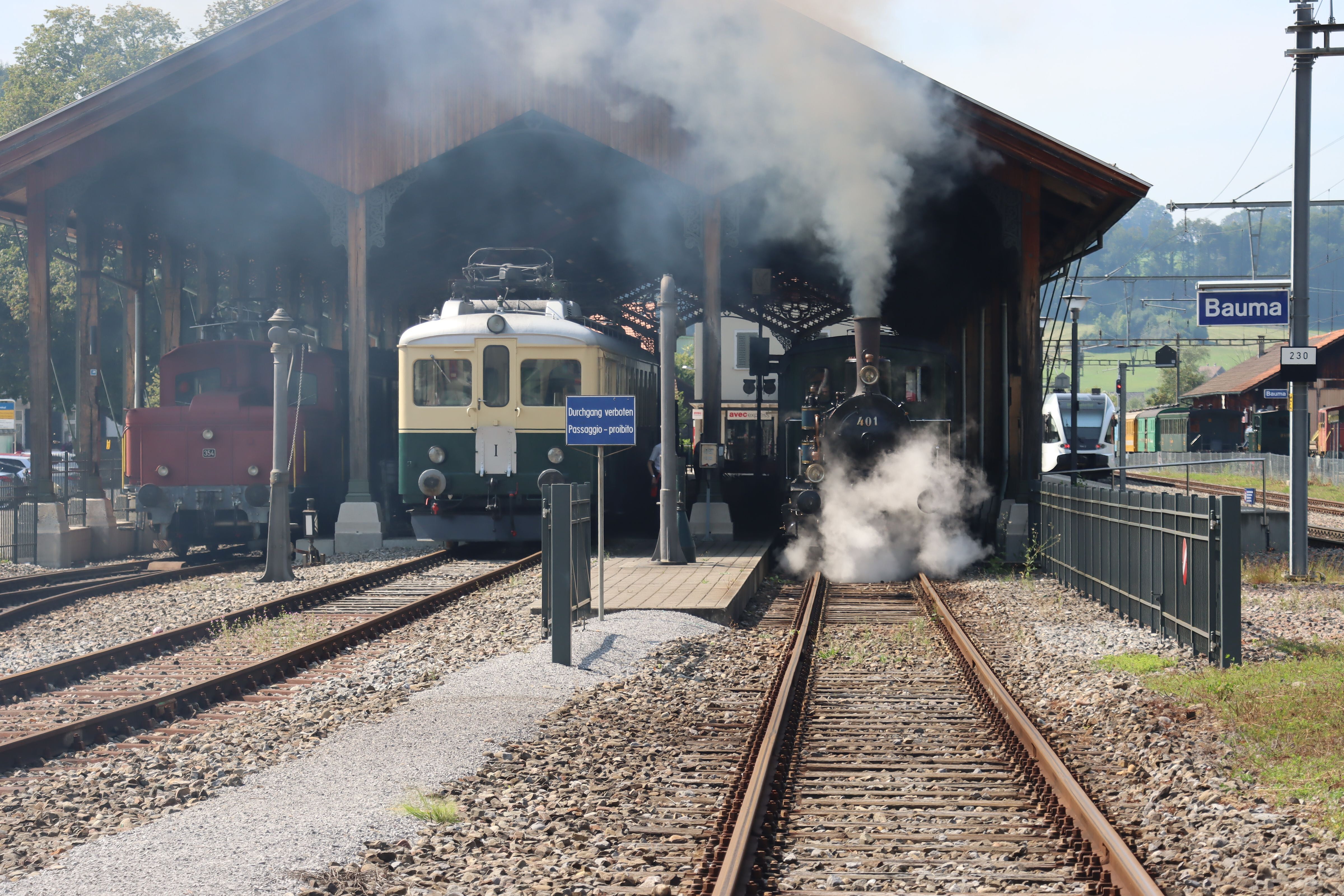Die Holzkonstruktion der historischen Bahnhofhalle in Bauma schreibt Architekturgeschichte und ist ein Denkmal von nationaler Bedeutung. Das Bahnhofgebäude und die Lokomotiv-Remise stehen mit ihrer 150-jährigen Vergangenheit kaum hintenan. Als krasser Kontrast wirkt da die Ausstellung zur zerstörerischen Kraft des Wassers der Töss, die einst einen starken Einfluss auf die Gestaltung des Bahnareals hatte. Abgerundet wird der Besuch beim Bahnkulturerbe in Bauma mit dem Vorstellen des projektierten historischen Depotareals.