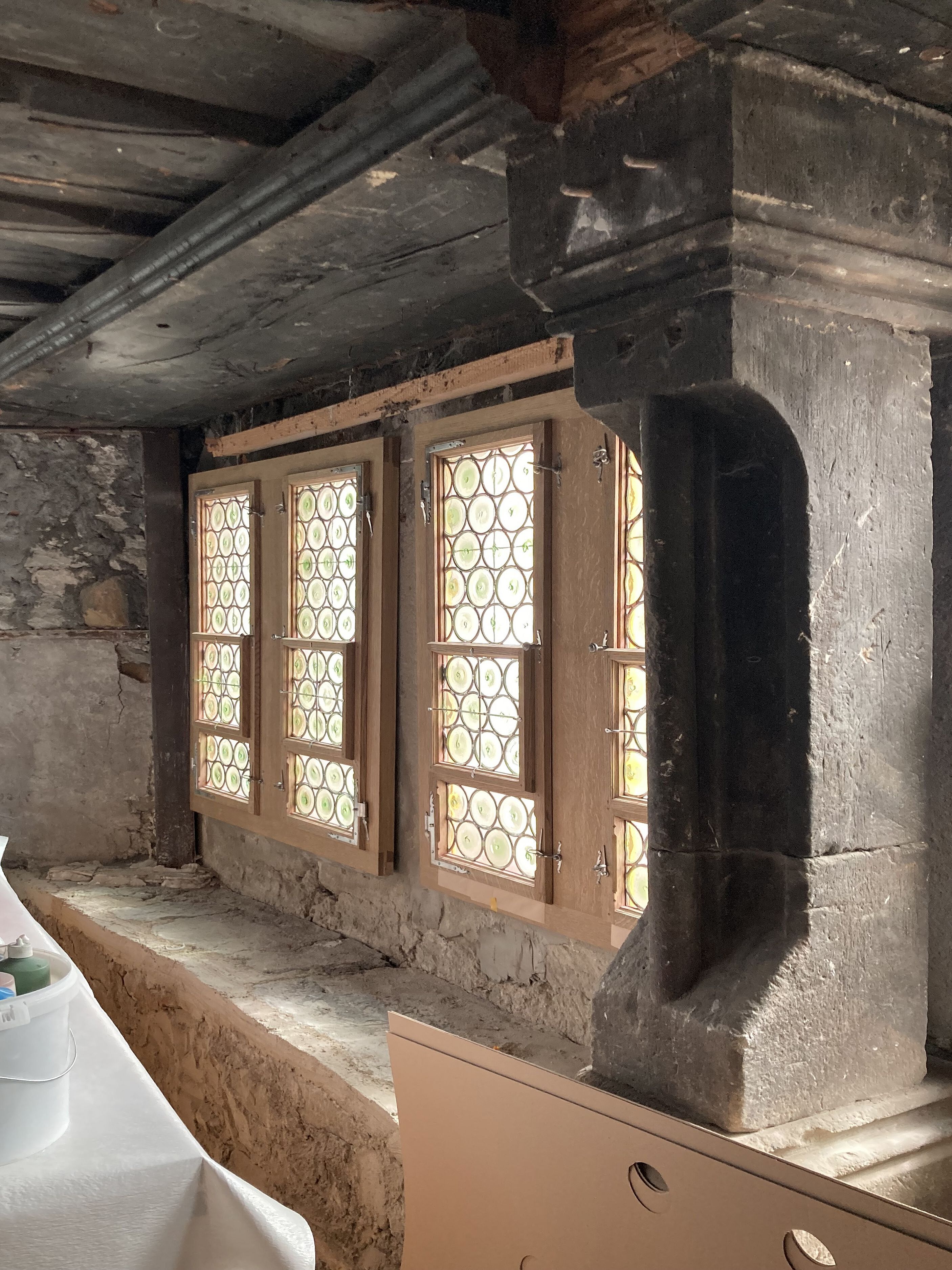 Die Fenster und Tore der ehemaligen Sust in Tuggen wurden auf der Basis historischer Vorbilder ersetzt, wobei sich die Planenden an Darstellungen aus der Diebold Schilling Chronik orientierten. Eine enge Zusammenarbeit mit den Ausführenden ermöglichte den Einbau akkurater Holzfenster mit Bleiverglasungen und Schiebefenstern. Im Untergeschoss legten die bauarchäologischen Untersuchungen drei markante Tore frei, die ursprünglich den Zugang zum See ebneten und heute in neuer Interpretation wieder vorzufinden sind.