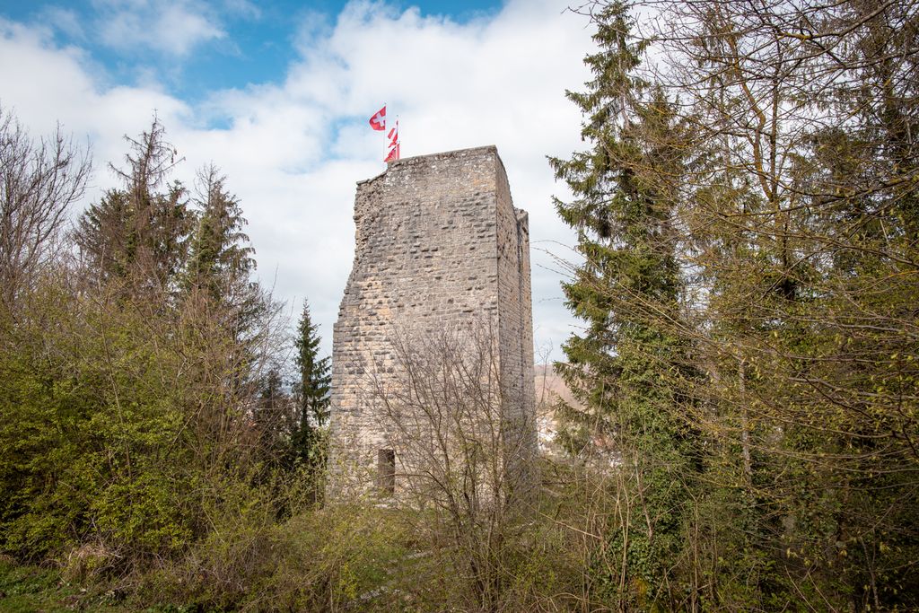 Érigé vers 1260 par les comtes de Montbéliard, le château domine la vallée de l’Allaine et la Trouée de Belfort. En 1674, l’édifice est incendié par le maréchal Turenne. Il ne reste, dès lors, que le donjon. Au sommet de ce dernier, on trouve parfois la Fée Arie, qui veille sur le trésor caché dans le réseau de grottes sous le château.